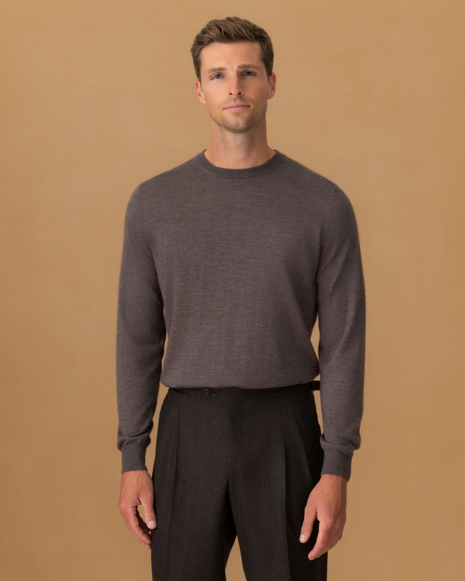 Designed for incredible comfort whether on the move or at home, this brown crew neck sweater is cut from our extra fine cashmere silk fabric.