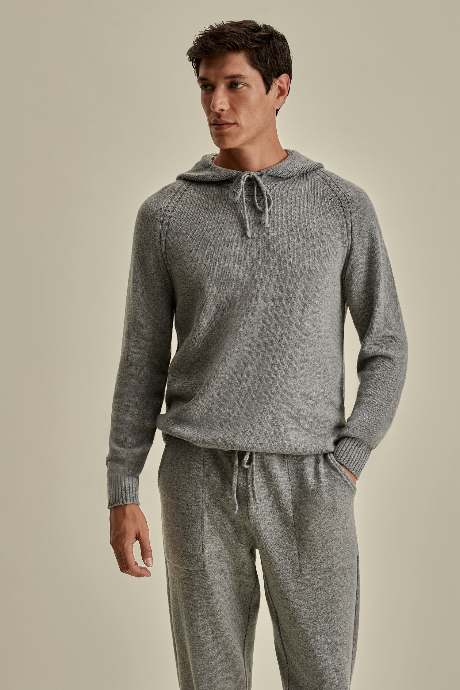 If you want nothing but the softest, most luxurious knit this winter, our grey cashmere pullover hoodie is for you. The fabric is the star of the show - a 100% pure cashmere, woven loosely for a textural look and a delicate feel against the skin.