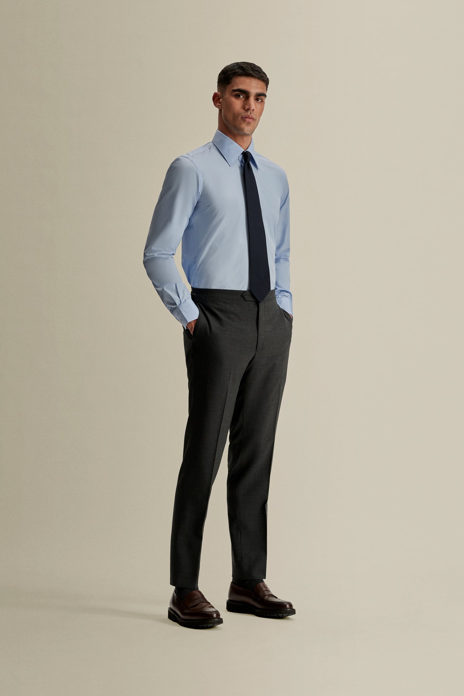 An excellent alternative to cotton or linen trousers, this grey fresco pair is lightweight and breathable, making them perfect for dressing up during the warmer months.