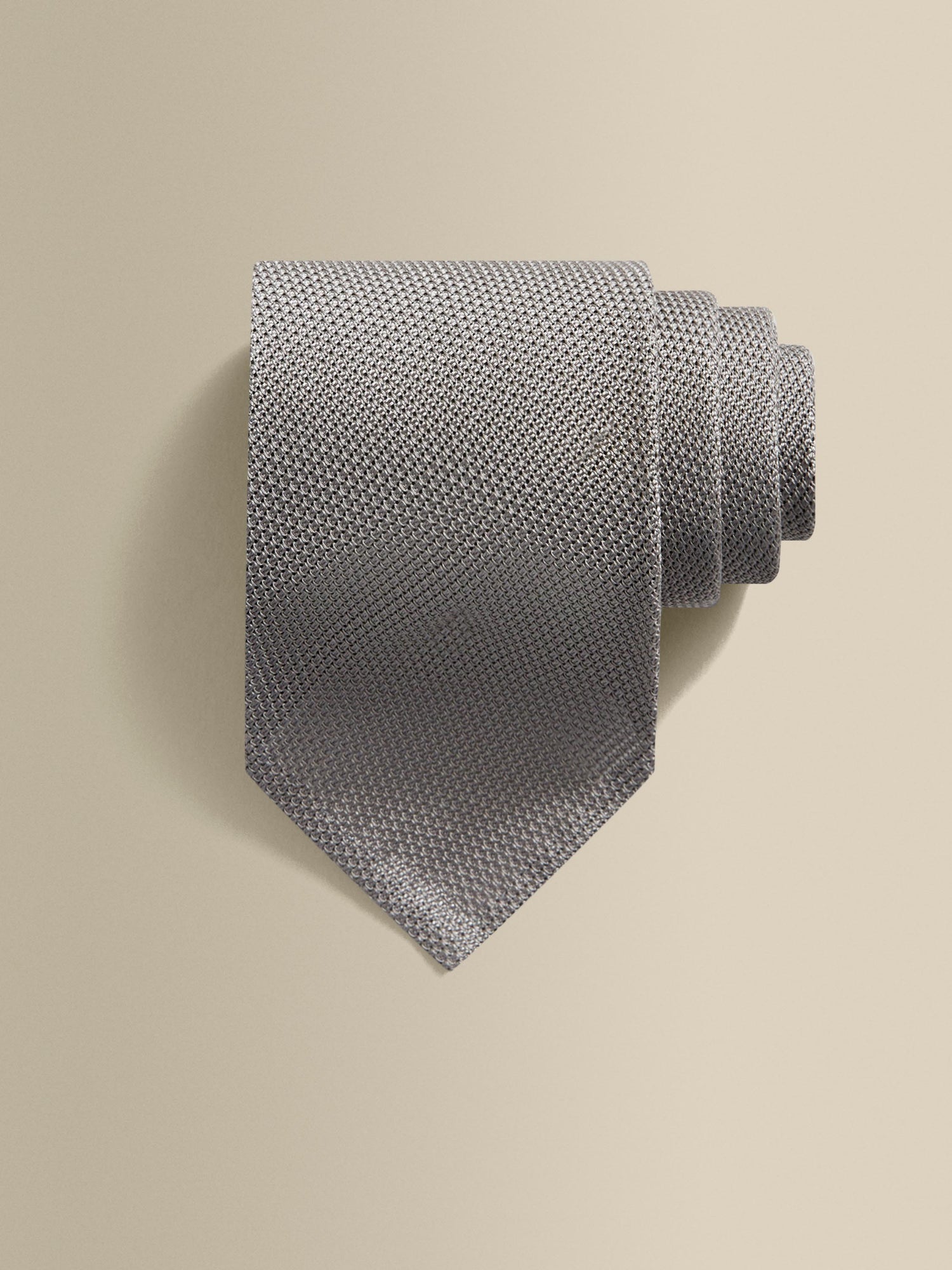 Boasting a soft, silky hand-feel, this grey grenadine tie will add an elegant finishing touch to tailored looks. The fabric’s subtle knitted texture perfectly complements plain cotton or chambray shirting, while the grey shade offers unrivalled versatility.