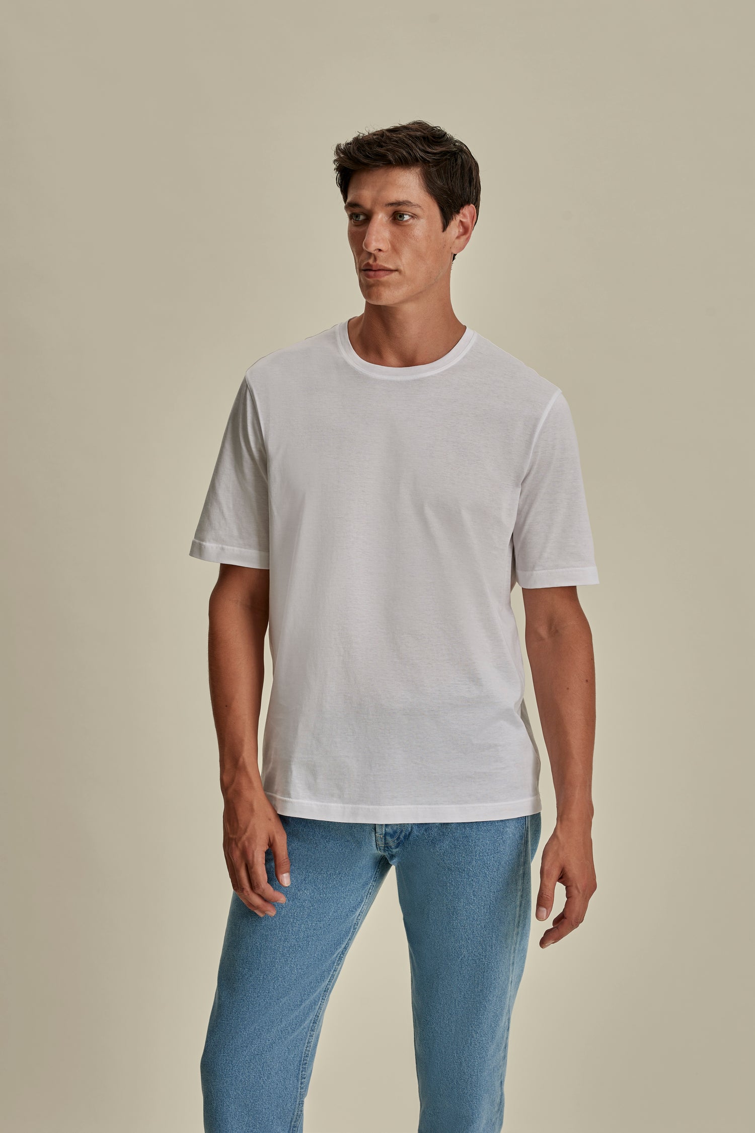 We pride ourselves on the fit of our T-shirts. Not too slim, nor too relaxed, they’re easy, comfortable and work with everything from tailoring to jeans. This one comes with a wide crew neck and is finished in white for the ultimate in versatility.